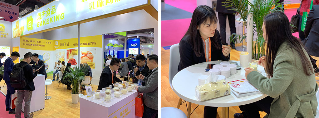 展会现场听到不少客户对我们酸奶粉赞扬不已,与市面上那些用植脂末或乳粉+香精调配而成的复配品不同的是,焙杰酸奶粉采用伊犁鲜奶+乳酸菌种+
