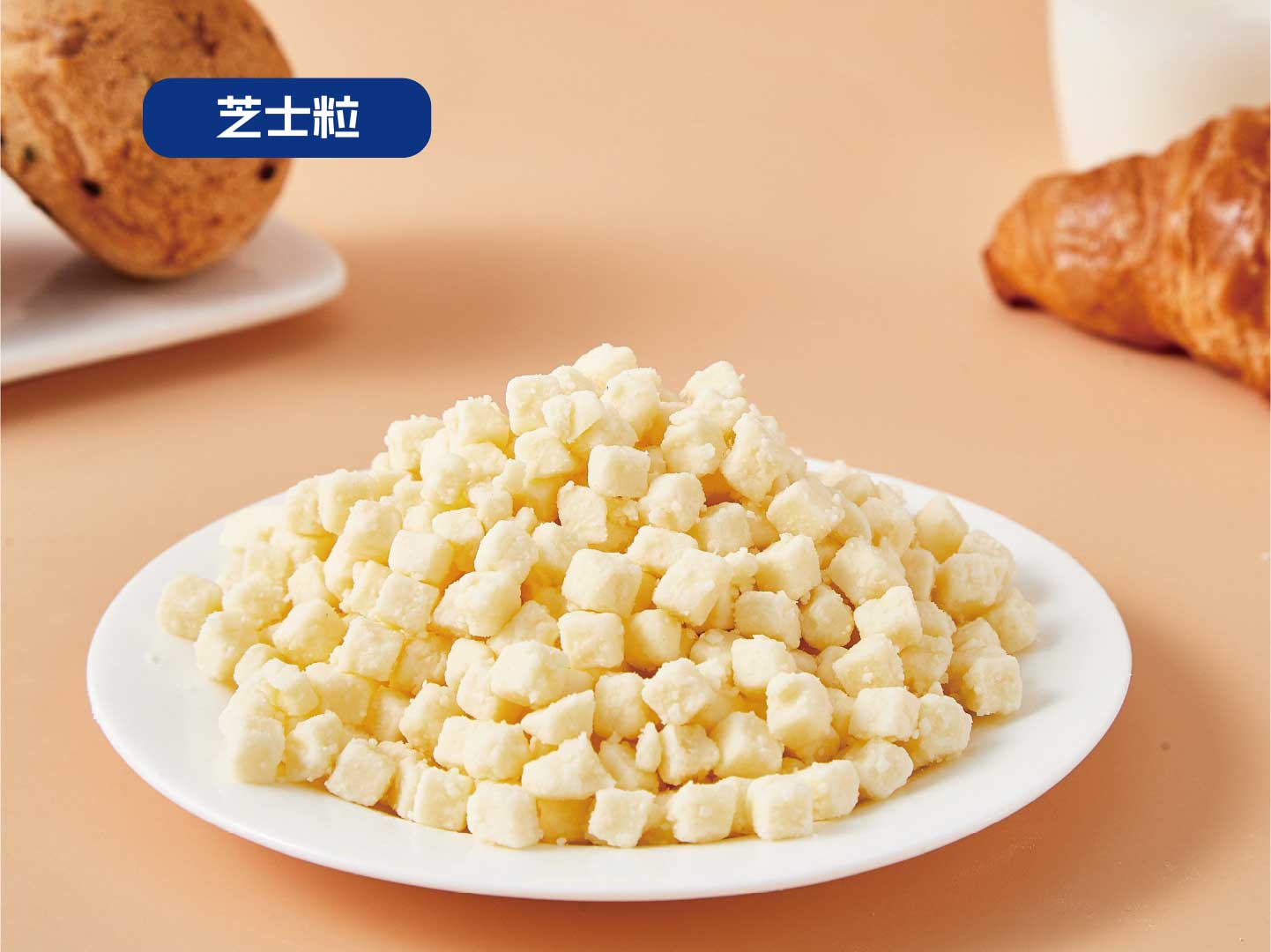 {C}{C}{C}l {C}{C}{C}高熔点芝士粒:耐230℃高温,烤炸后芝士粒真实可见,看得见的芝士美味。