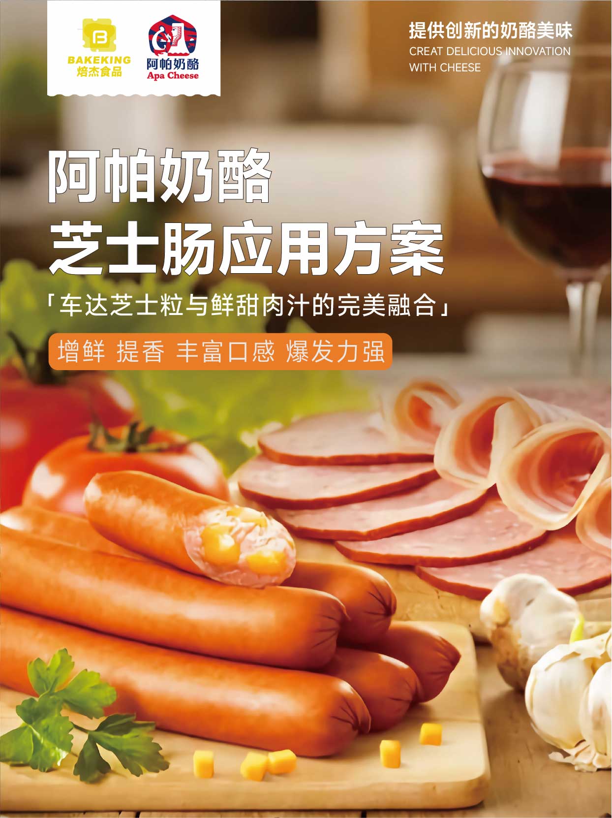 {C}{C}{C}l {C}{C}{C}适配芝士饺子、芝士烤肠 / 鲜肉肠,冷冻、熟制工艺均适配,为肉制品带来全新口感体验。